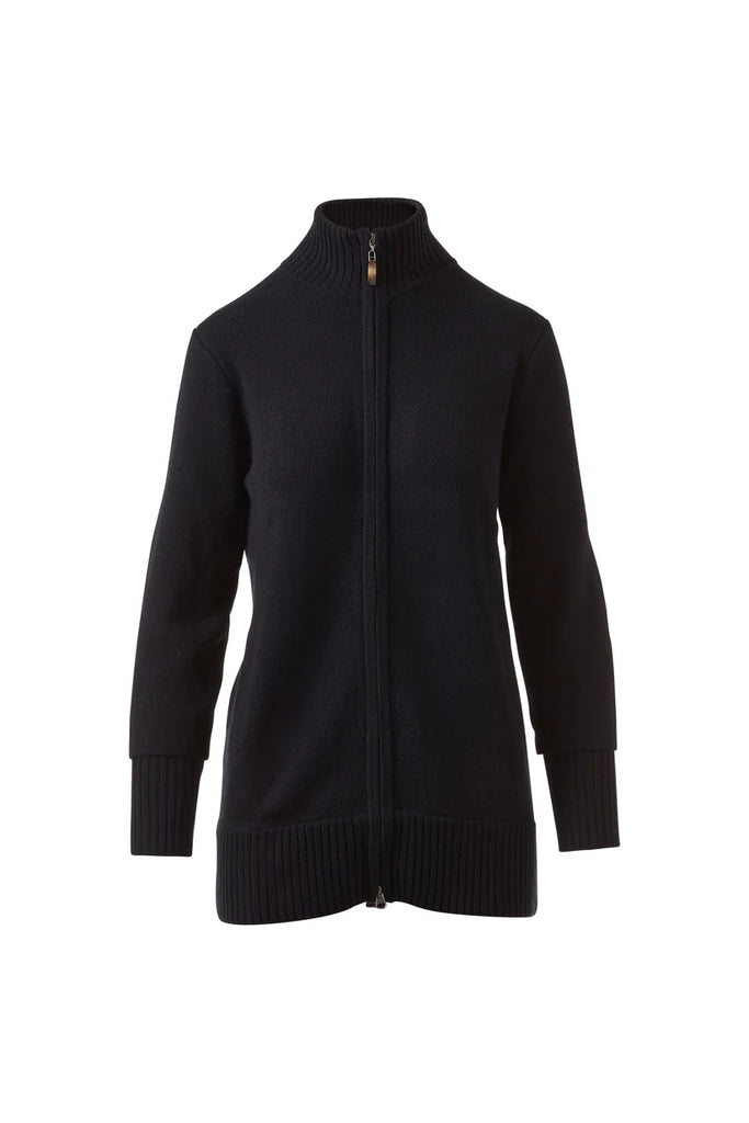 Kinross Doubleknit Mock zip up jacket. Double cuff detail and rib collar. Available in Camel, Black and Slate.