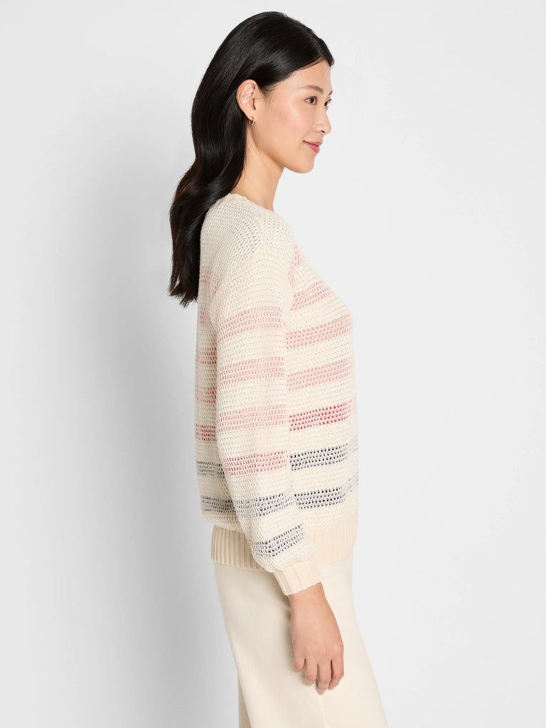 Inspired by the playful sophistication and effortless style of Scandinavia, this highly textured and highly versatile sweater brings ease to any outfit. Thick ribbing at the cuffs, collar, and hem add extra comfort, while the two-tone striping adds lighthearted vibes. Goes great with denim of all shades, from casual indigo to more formal white. In a relaxed, modern fit that's always easy. A pullover style with a dropped shoulder and sits at hip.